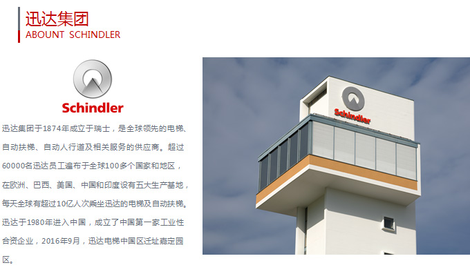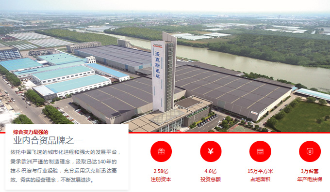 沃克斯迅達(dá)電梯有限公司是首批國(guó)家A級(jí)電梯制造和A級(jí)安裝改造維修企業(yè)。其前身湖州迅達(dá)電梯有限公司在中國(guó)境內(nèi)擁有40年生產(chǎn)銷售及安裝各類電梯及扶梯的寶貴經(jīng)驗(yàn)。沃克斯迅達(dá)電梯有限公司總投資3.5億人民幣,注冊(cè)資本2.58億人民幣,總占地面積150000平方米,高度108米的試驗(yàn)塔內(nèi)建有7.0m/s超高速等電梯,公司的產(chǎn)品質(zhì)量及技術(shù)研發(fā)能力已處于行業(yè)領(lǐng)先水平。 2016年,沃克斯迅達(dá)電梯有限公司與世界電梯業(yè)巨頭——瑞士迅達(dá)集團(tuán)正式合資,雙方開(kāi)始全面合作,公司發(fā)展步入嶄新階段。